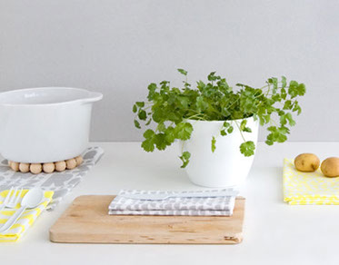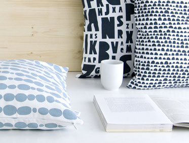 küchenhandtücher, kissenhüllen und taschen – hergestellt aus den handbedruckten baumwollstoffen